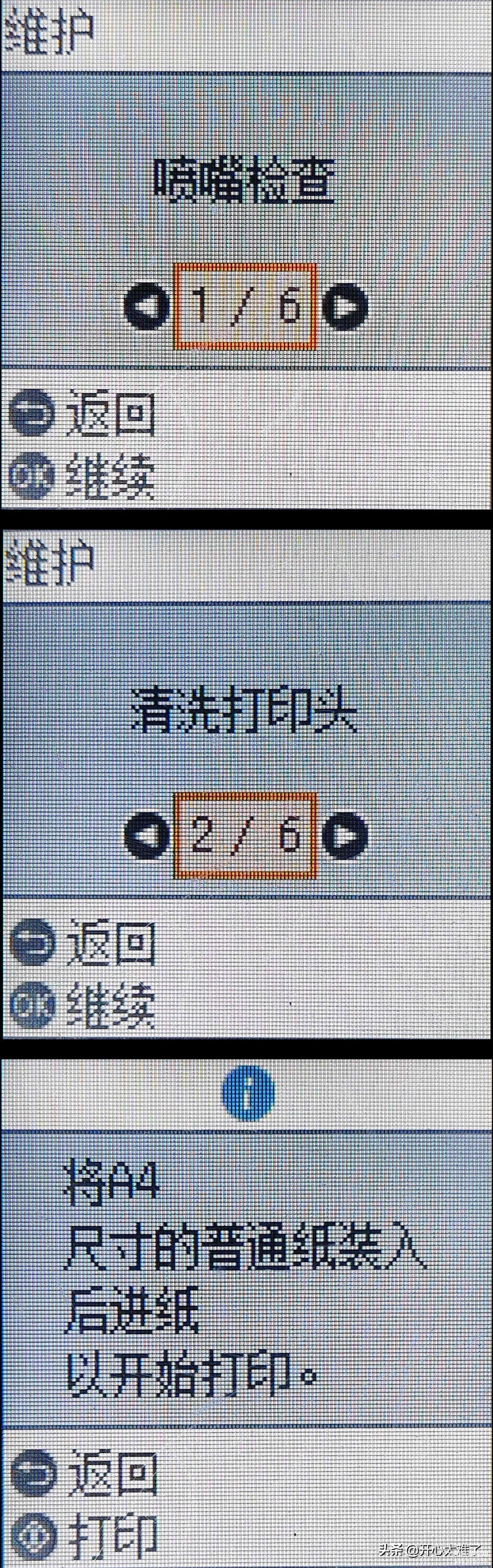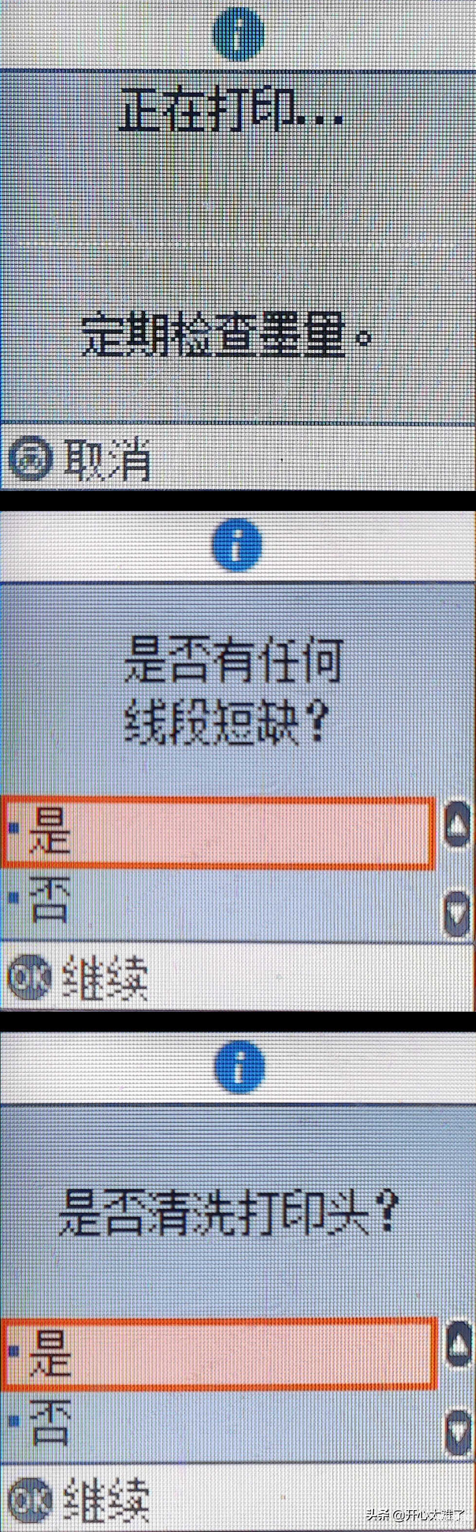喷嘴检查和清洗打印机和电脑上的是一样的,只是不需要通过电脑进行操作。