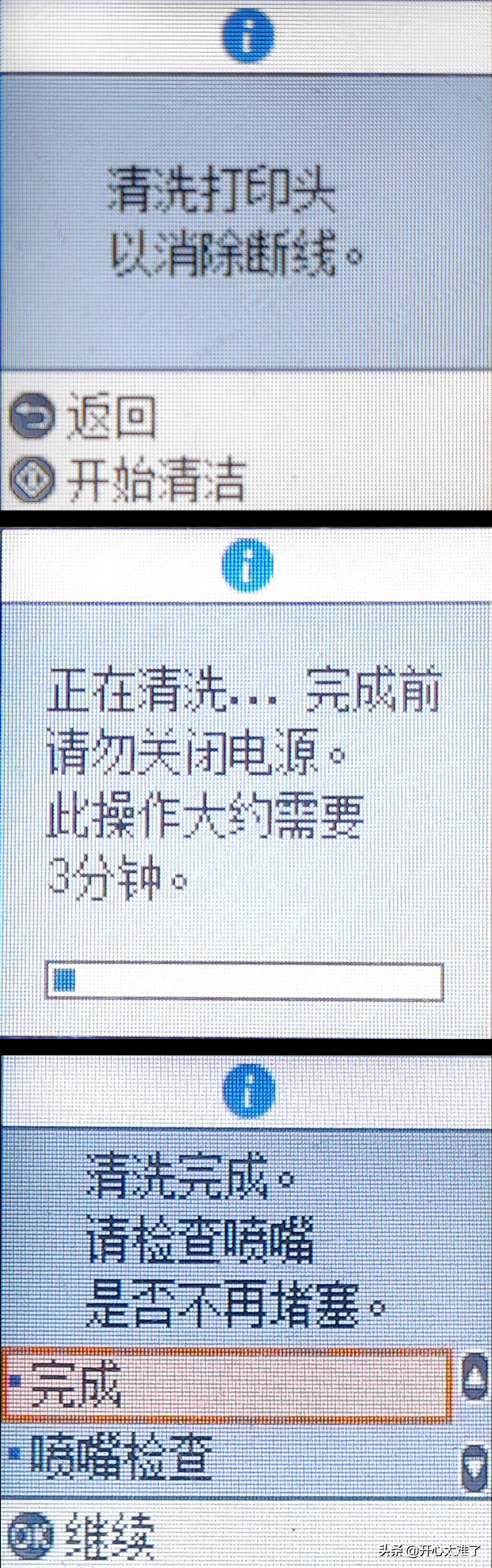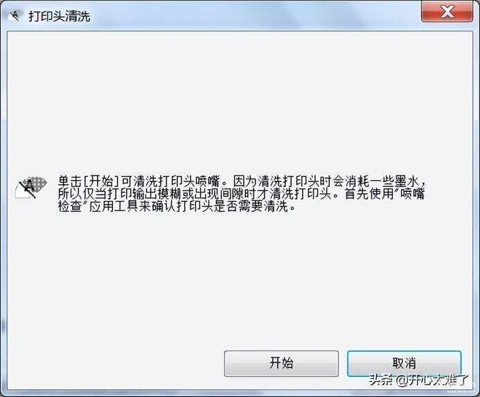 “开始”,打印机就开始清洗打印头喷嘴了。