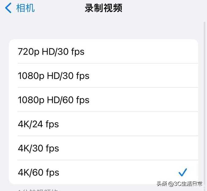 比较新的机型也可以直接打开相机,切换到录影,右上角选择4K/60 fps。