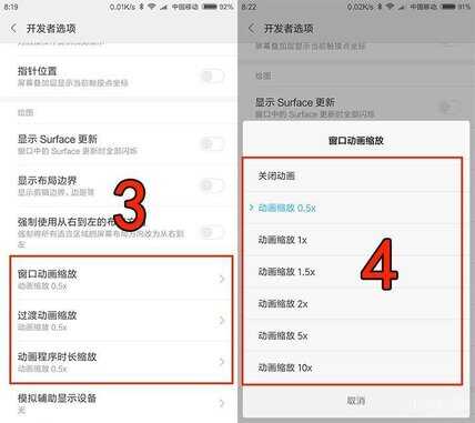 三:设置开发者选项优化性能。(按照第一步打开开发者选项)