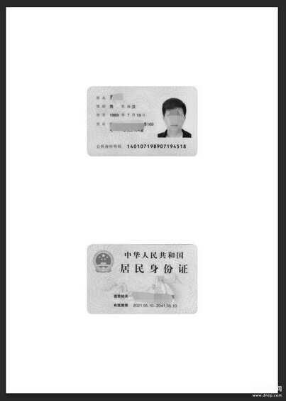 (4)将身份证正反面合成在A4纸上,模拟真实扫描效果;