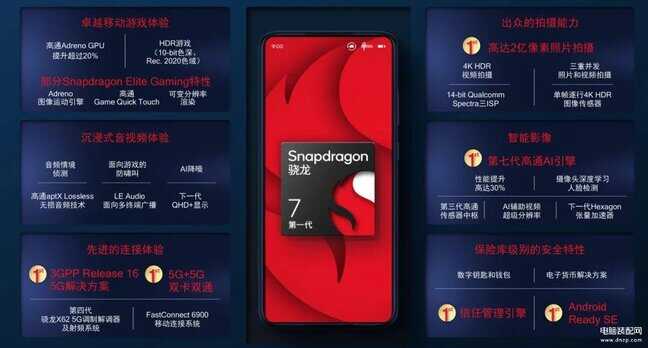 第一代骁龙7提升最明显的反而是外围,它支持4K屏幕和2亿像素的相机,基带升级到X62,外围芯片也从FastConnect 6700升级到FastConnect 6900,增加双频并发功能,理论峰值3.6Gbps。各大厂商的骁龙7机型会在第二季面世,OPPO Reno8 Pro将会首发骁龙7。
