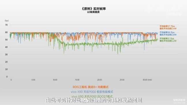 高通宣称原神功耗下降30%,其甚至放出了著名“卡牌类跑分软件”《原神》的帧数,宣传25度下,810P画质,游戏60分钟的平均帧率达到60.2帧(原地起立!),宣称原神功耗下降30%。