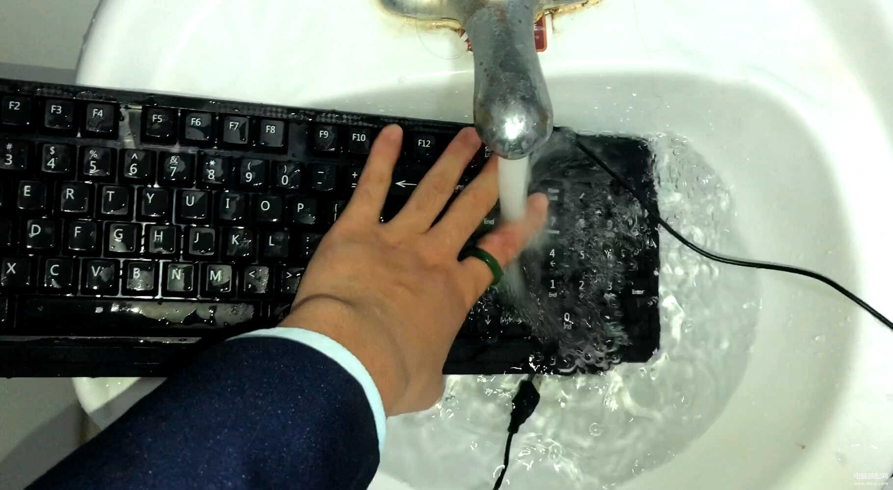 下面我们就实际测试下,这种塑料薄膜键盘用水冲洗干净后还能不能继续用。