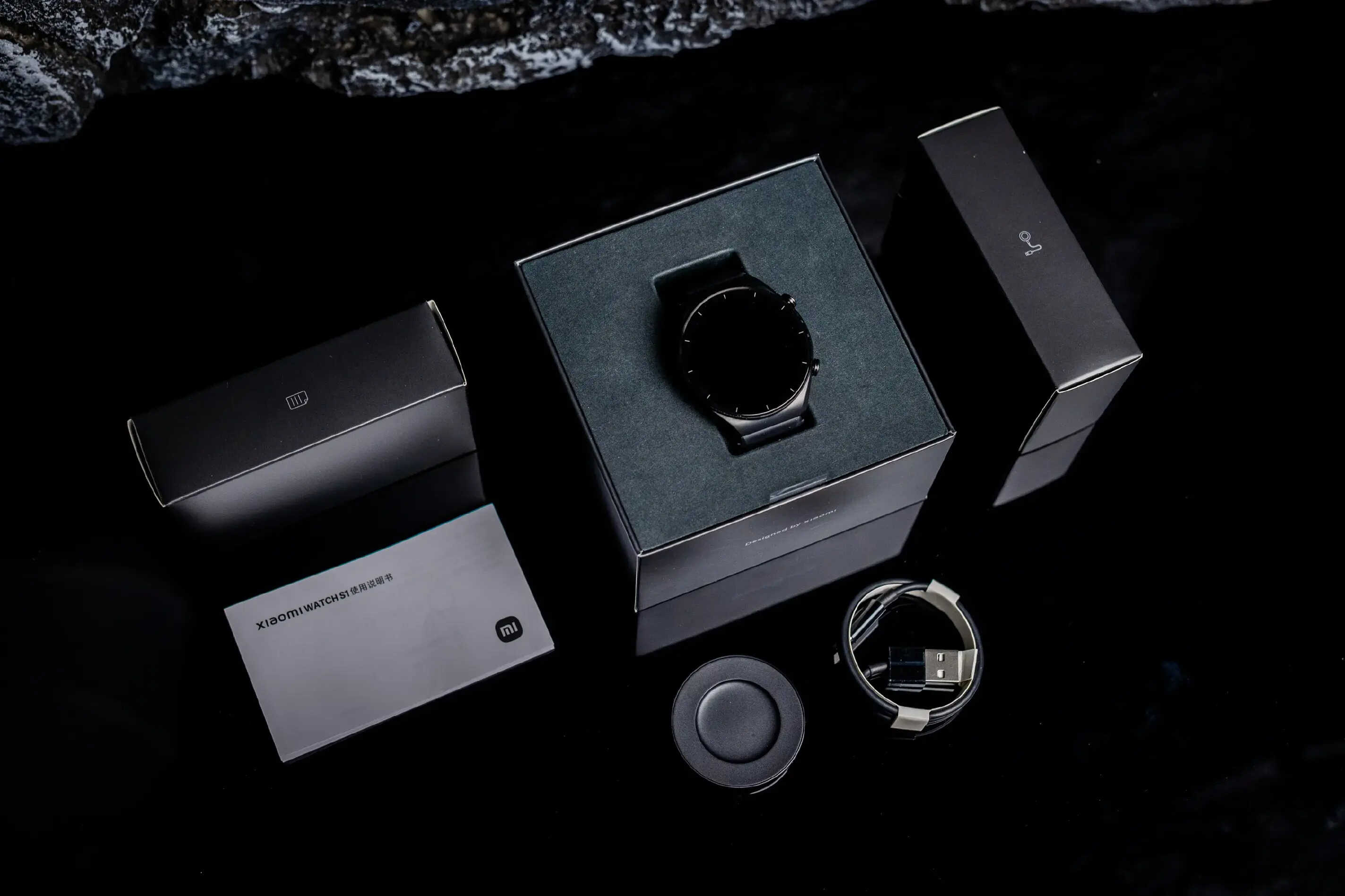 小米Watch S1的定位是「献给商务人士的高端智能手表」。这样的风格从它的包装上就有所体现:独特绒布质感的外盒,配上凸出的英文字母,一股商务气息扑面而来。内盒里有手表、无线充电器和保修卡、说明书。