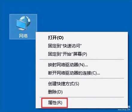 1、在桌面上点击网络右键,选择属性;如图所示: