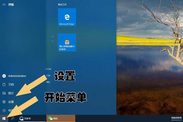 打开电脑左下角的开始菜单,找到齿轮图标,点击进入设置。如下图: