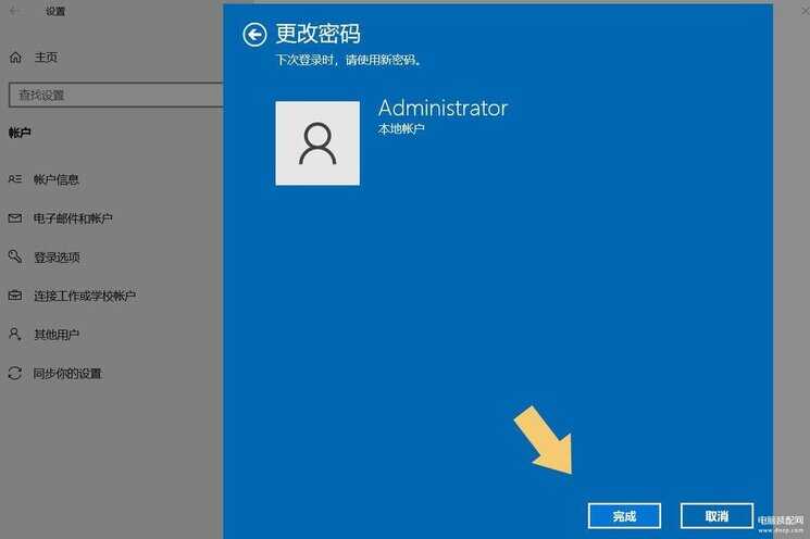点击完成以后,名为“Administrator”的帐户密码也就取消啦。