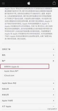 第一步:进入苹果官网,选择并点击管理Apple ID(如下面图片所示)。