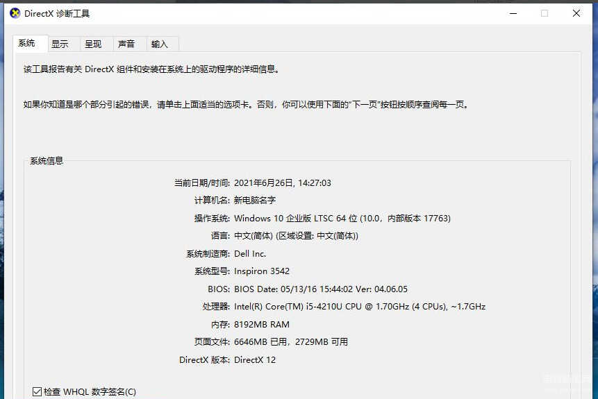 2、电脑打开DX诊断工具后,它会自动开始检查系统硬件的信息,我们等待一会就好。