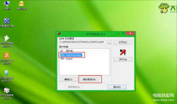 (3)进入winpe系统界面后直接打开运行“登录密码清除”,进入软件主界面后点击“打开”按钮,最后就可以看到管理员账号所对应的“密码”了。