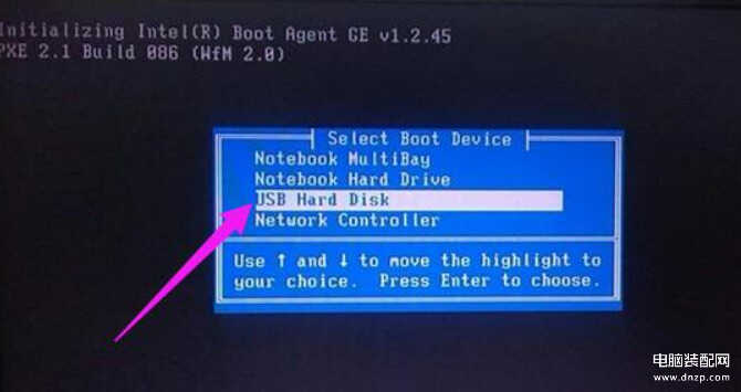 (1)首先使用U启盘工具插入电脑USB端口,将电脑开机一直按F1或F2键,接着选择从U盘启动敲回车。