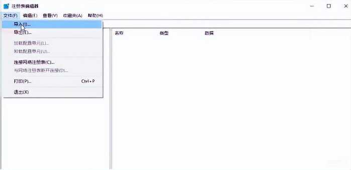 3、将导出的注册表存放到U盘或者手机,连接到注册表损坏的电脑,同样打开注册表,点击左上角的文件,选择【导入】。如图所示: