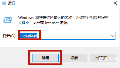 2.在运行函数中输入“INETCPL.CPL”,然后单击“确定”打开。