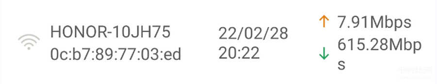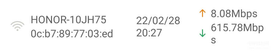 房间二的上行速度为8.08Mbps,下行速度为615.78Mbps,数据上要优于房间一。