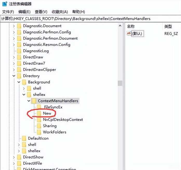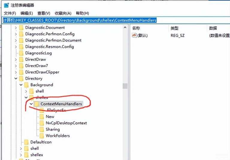 计算机\HKEY_CLASSES_ROOT\Directory\Background\shellex\ContextMenuHandlers文件夹
