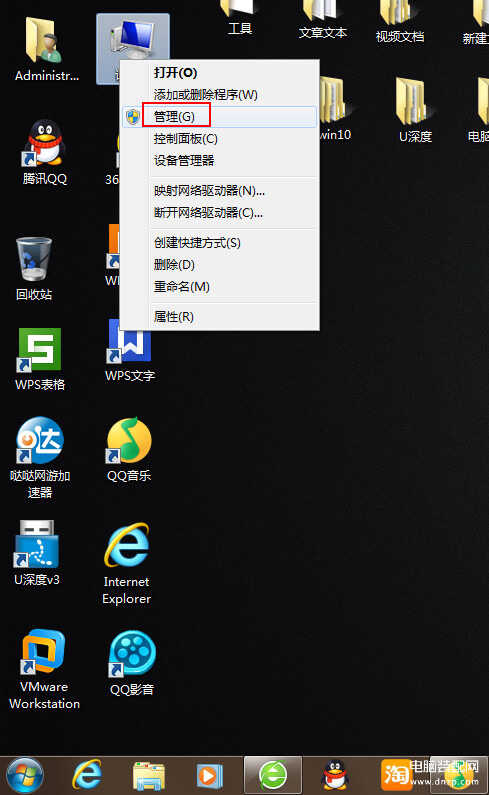 1、在找到计算机,选择“管理”,如下图所示: