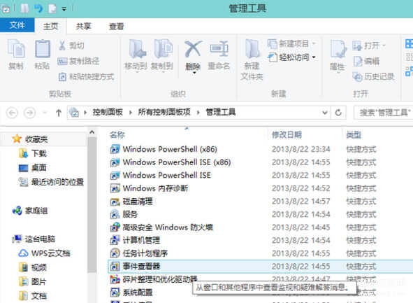 3、然后就可以在管理工具中直接找到事件查看器了,双击便可打开查看器。