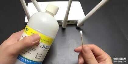 第二步:棉签,沾取适量的酒精,把路由器的各个插孔全都擦拭一遍,接口处累积的灰尘容易造成信号输出不良,尤其是里面的金属接触点,酒精容易挥发且具有清洁的作用,不会影响到插孔。然后再用干棉签擦拭一遍。