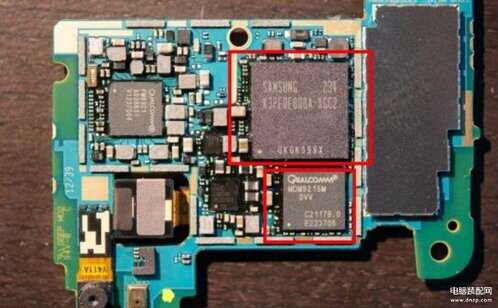 我们以图来说明,大家是否能够看清基带在SoC里面占据了多大空间?或者我们再来看看外挂基带基带所占据的面积。(大红框内为SoC,外挂的基带为下面的小红框)
