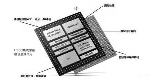 SoC我们可以简单理解为芯片,但是芯片某种意义上讲却不能等于SoC,因为SoC不仅包含了用于日常运转设备的CPU,还有负责处理图像和游戏的GPU,负责处理拍照和光线信息的ISP以及负责收发信号的基带模块。