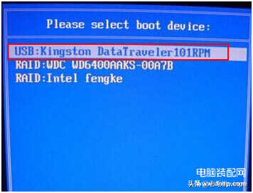 第二步:将制作好的U盘启动盘插入电脑的USB接口,重启电脑,当出现开机画面时按下U盘启动快捷键,进入选择界面后选择带有USB字样的选项,回车