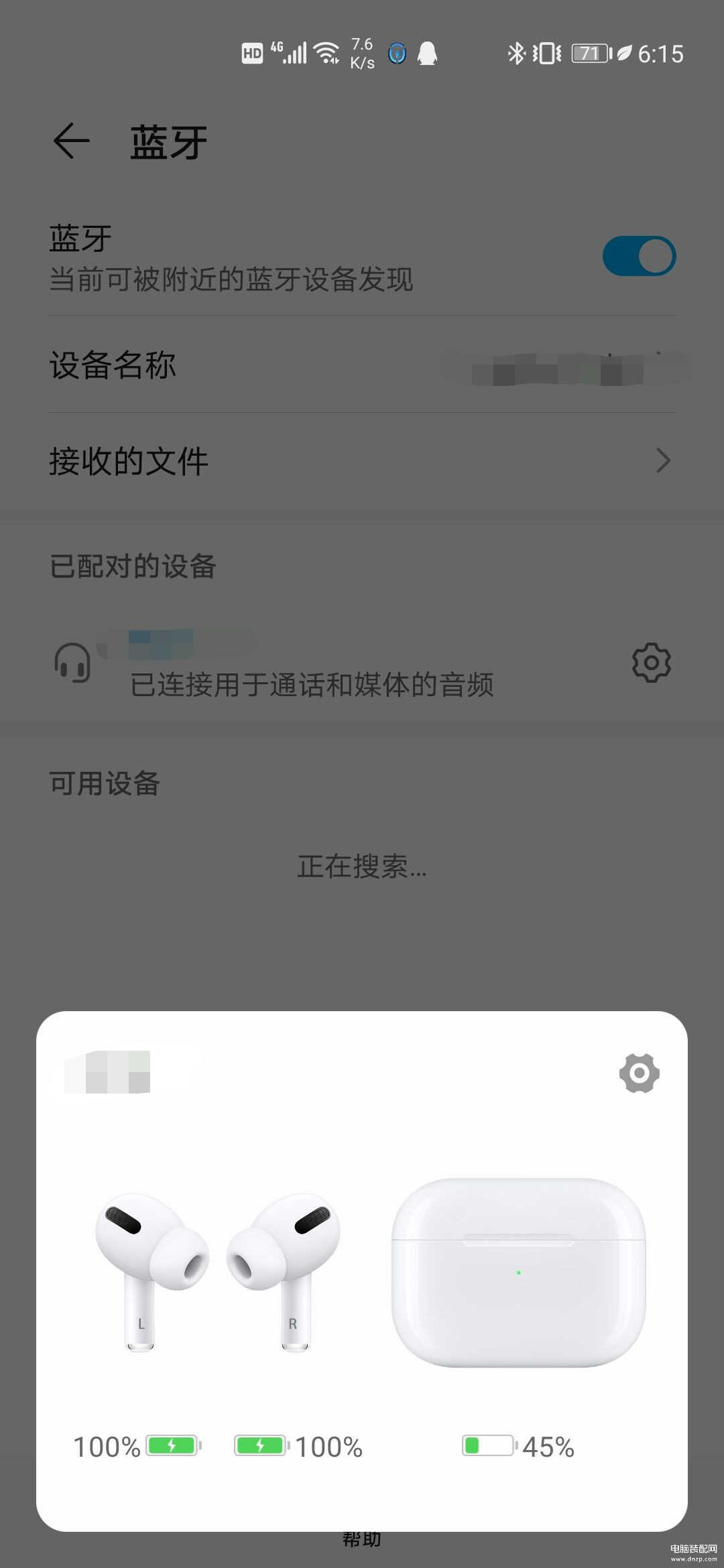 两者间的设备切换,从手机切换到苹果手机时只需在控制中心切换音频输出设备。而从苹果设备切换到安卓设备时则需要进入安卓设备的蓝牙连接列表找到设备进行手动连接。在默认状态下,AirPods Pro在开盖时会连接到最近一次连接过的设备。
