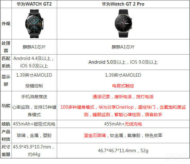 华为gt2pro和gt2的区别 功能参数配置价格详情对比