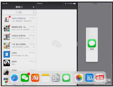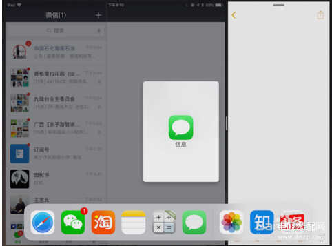 然后从Dock中拖出想打开的第二个APP,拖动到右边的话,可以形成左右分屏: