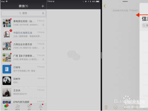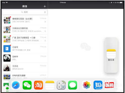 我们想左右分屏后再打开第三个APP浮屏,所以我们把第二个APP放在了右边,并轻轻划出Dock: