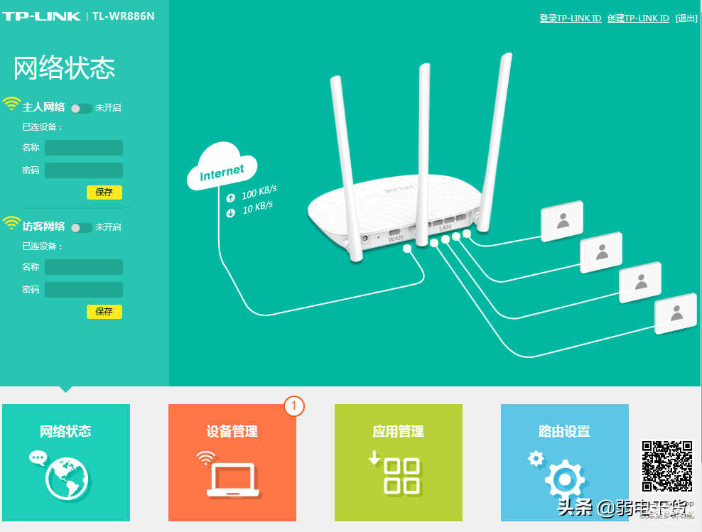 成功登录路由器管理界面,在管理界面,您可以查看无线密码、设置宽带连接以及网速限制、WDS桥接等一系列功能应用。