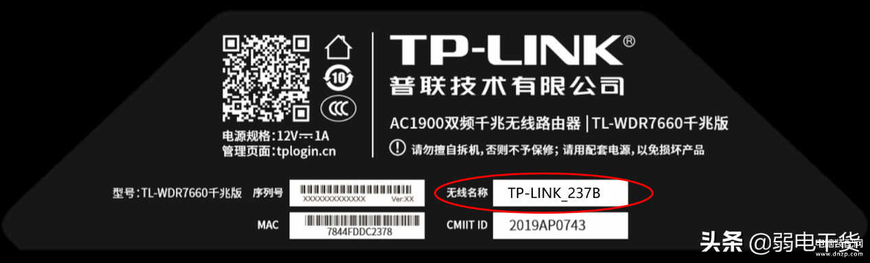 在路由器的底部标贴上查看路由器的管理地址、出厂的无线名称,如下图: