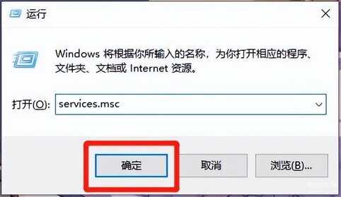 第一步:使用【Win+R】组合键打开运行窗口,在窗口中输入services.msc,点击【确定】进入服务页面。