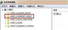 3、找到Hkey current user展开它。如图所示: