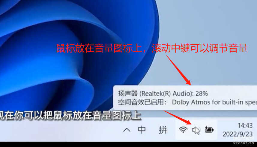 四、鼠标放在音量图标上,滚动中键可以调节音量。