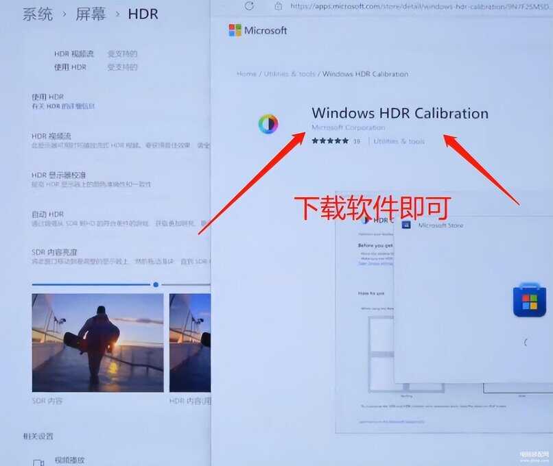系统设置里面加入了,新的HDR校准的功能,当我们打开这个功能之后呢,它会需要你在微软商店里面,下载个软件,这个软件呢,有点类似于之前Xbox上的HDR校准工具,校准完之后呢,显示器的HDR效果,它会有比较大的提升。