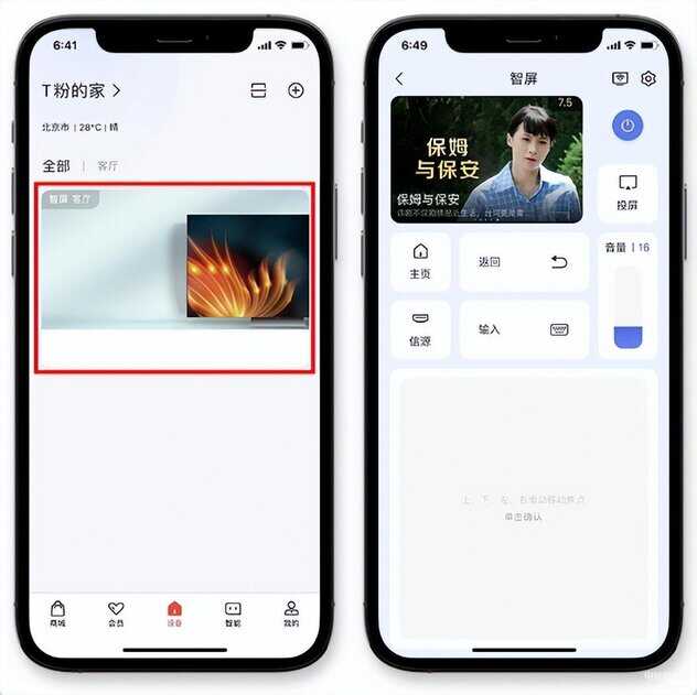 在家里的智屏上登录TCL账号,然后在应用商店里(APP Store)下载软件 — TCL APP,登录TCL账号后,「设备」栏界面会自动添加智屏(如果没有自动添加,可点击右上角加号添加),在手机上点击你想看的影视内容,就可以开始投屏啦。