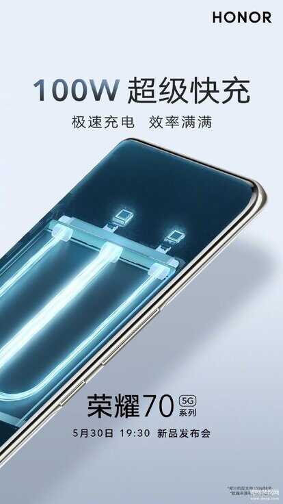 荣耀的数字系列新机荣耀70系列将于5月30日晚间发布,今天官方继续为该机进行预热,带来了快充方面的详情。
