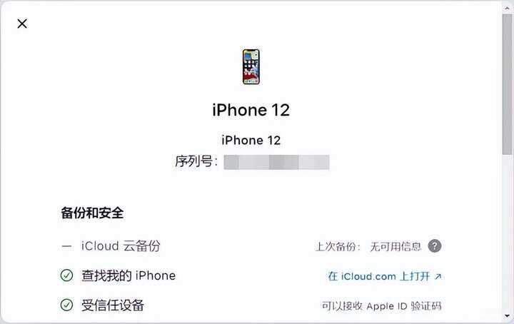 使用Apple ID账号登录苹果官网,下滑拉到【设备】选项,可以查看使用该 Apple ID登录过的iOS设备,点开即可查看相应设备的序列号。