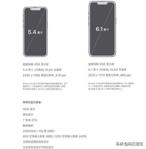 屏幕大小上iPhone 13为6.1英寸,而iPhone 13 mini为5.4英寸,不过二者都不是2K屏幕,因此,屏幕素质几乎没有差距。其他参数上基本都一致。