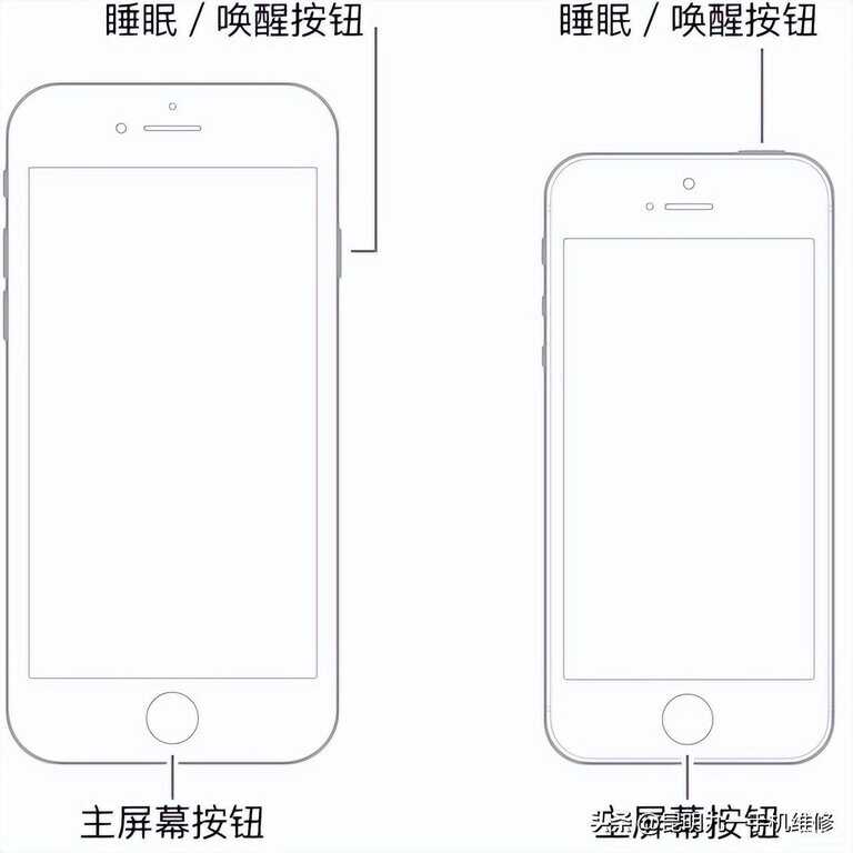 苹果6s及更早机型:一直按住开机键和Home键10s左右手机就会重启,看到手机出现苹果标志以后放开所有按键。