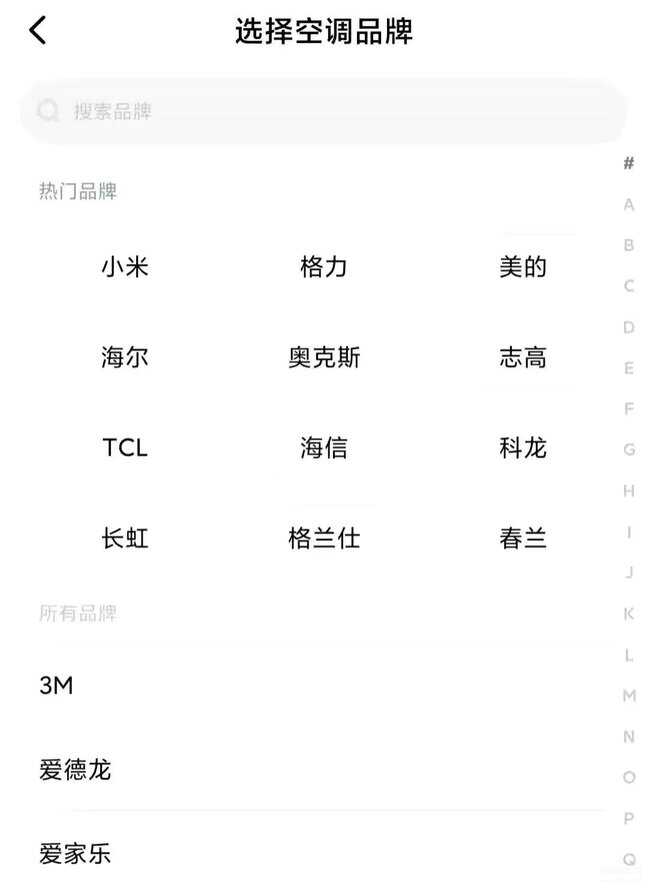 4.进入界面后选择想要控制的空调品牌,一定要选对品牌啊,不然没有用的。