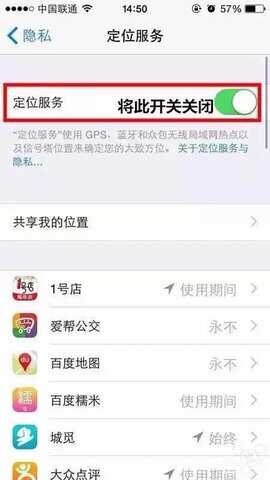打开“设置”,进入“隐私”-“定位服务”关闭开关,然后强制启动设备(如方法1),重启完成后打开定位服务。