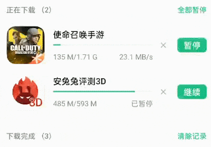 那么,在如此速率下,5G下载速度比起4G网络又将带来哪些改观呢?我们同样从应用商店选取了《使命召唤》手游进行下载测试。