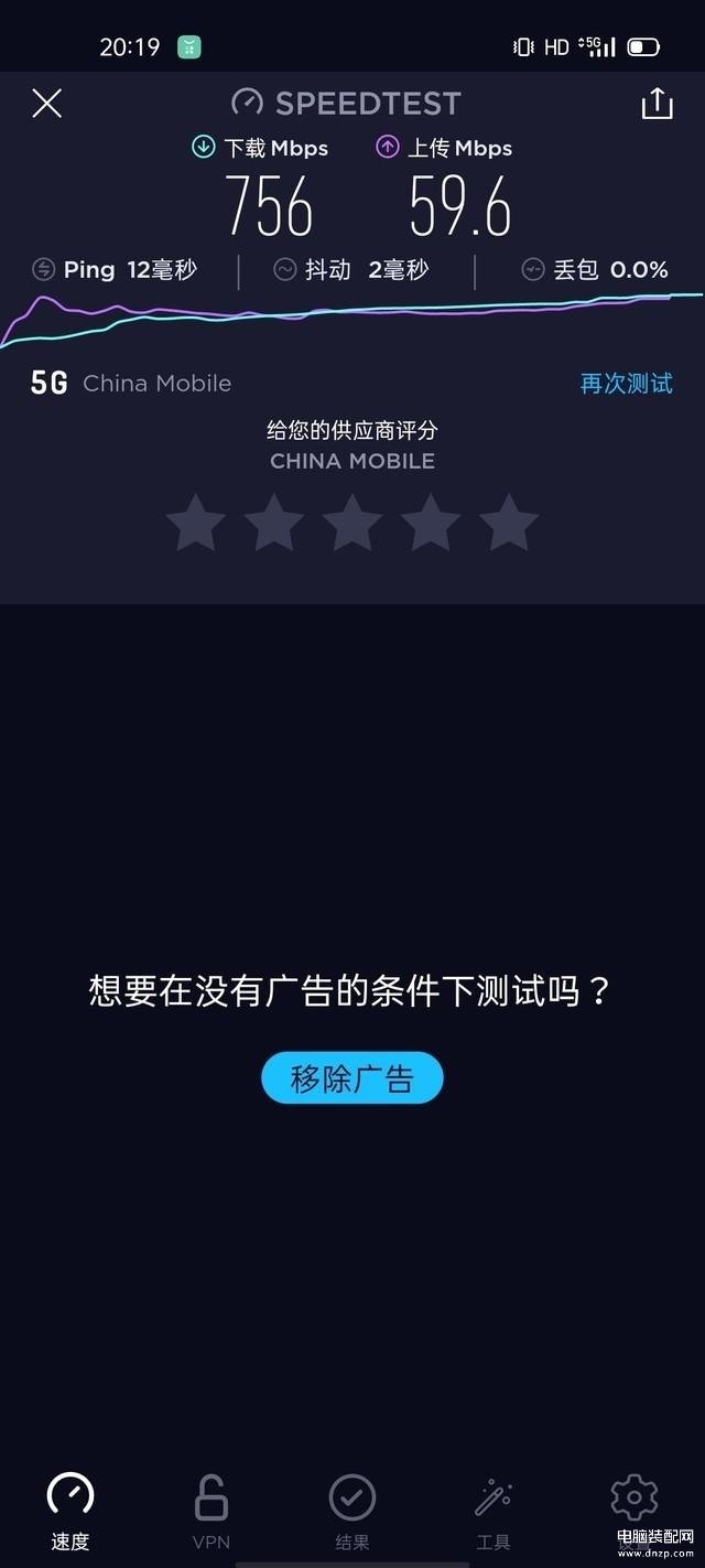 从SpeedTest测速结果来看,在5G网络环境下,真我V15平均5G下行速率达到了756Mbps/s,而上行速率也达到了59.6Mbps/s,这个成绩和我们在同一地点测试过的5G手机基本相同,也符合预期。