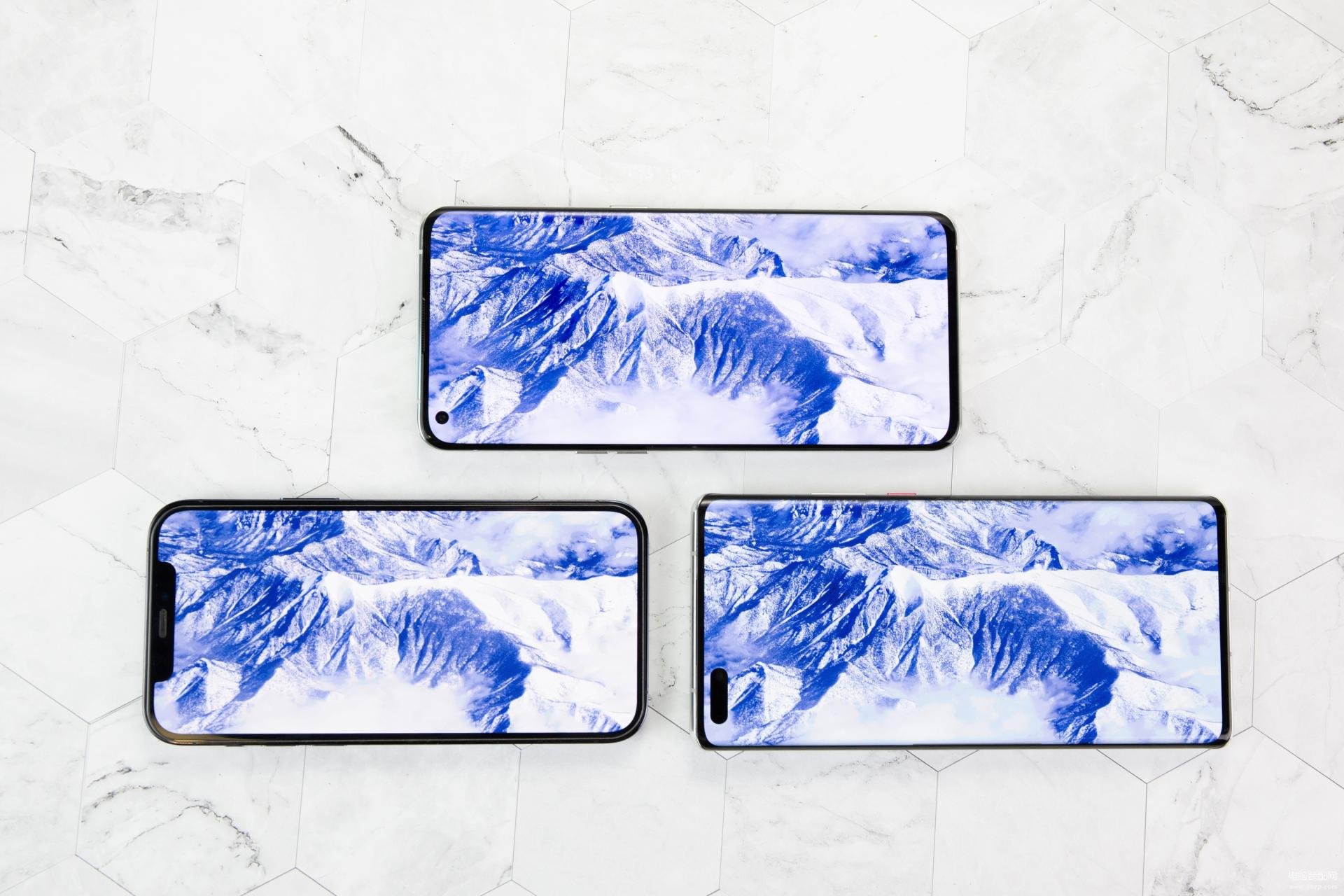 (从左到右:iPhone 12 Pro;华为Mate40 Pro;OPPO Find X3 Pro)