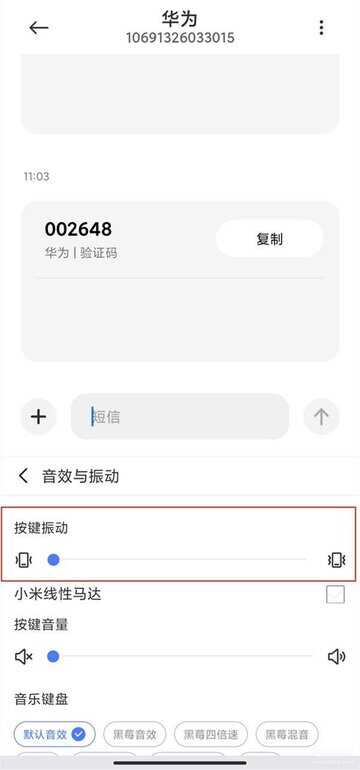 3、滑动按键振动下方的滑块,即可开启震动功能。