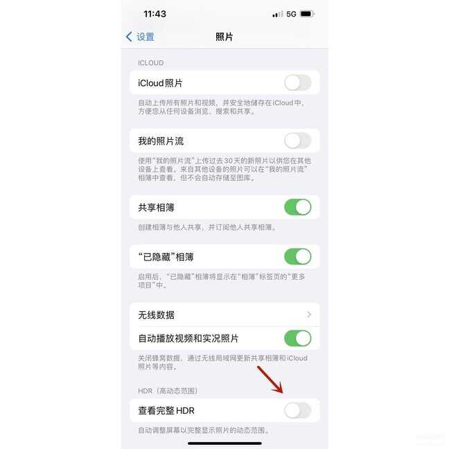 在用 iPhone 13进行拍摄时,明明在拍摄的时候都正常,但是当返回相册查看照片时,却发现照片不仅自己调亮了,还进行了锐化。这是因为 iPhone 在拍摄的时候会在相片的元数据文件中记录更多的亮度信息,以在照片里面实现 HDR的效果。不少用户都吐槽这把原本照片的美感搞没了,氛围感也没了,其实这个问题也可以解决,只需打开设置里的照片,划到底部,找到「查看完整 HDR」,选择关闭就好,这能适当改善。
