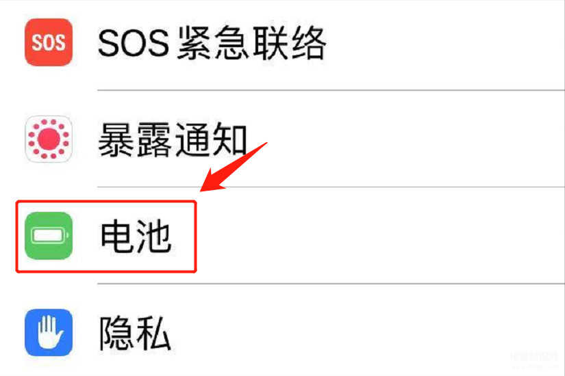 进入设置界面以后,下拉菜单,找到电池选项。如下图: