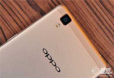 ◆在机身背面相机下还有一个略有凹凸感的“OPPO”logo,下部还有激光镭射的厂商铭牌和产品型号的标识。背面的机身采用三段式机身设计,两端的塑料部件是镶嵌在金属框中的,边角契合的非常严密,个人认为,比iPhone6s的背面要好看的多。